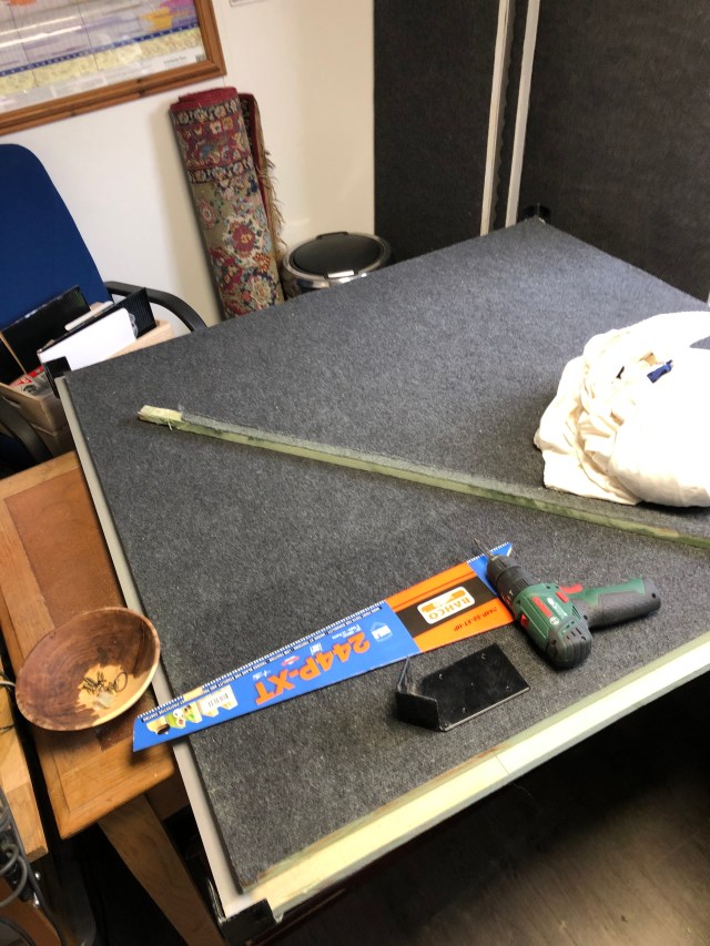 Given the booth was a little bigger than I needed for the office (it would’ve dominated the space and blocked out most of the daylight) and I’m always a sucker for a building project, a little customising was required. I’d’ve worn a mask too, but where can you get one of those these days!