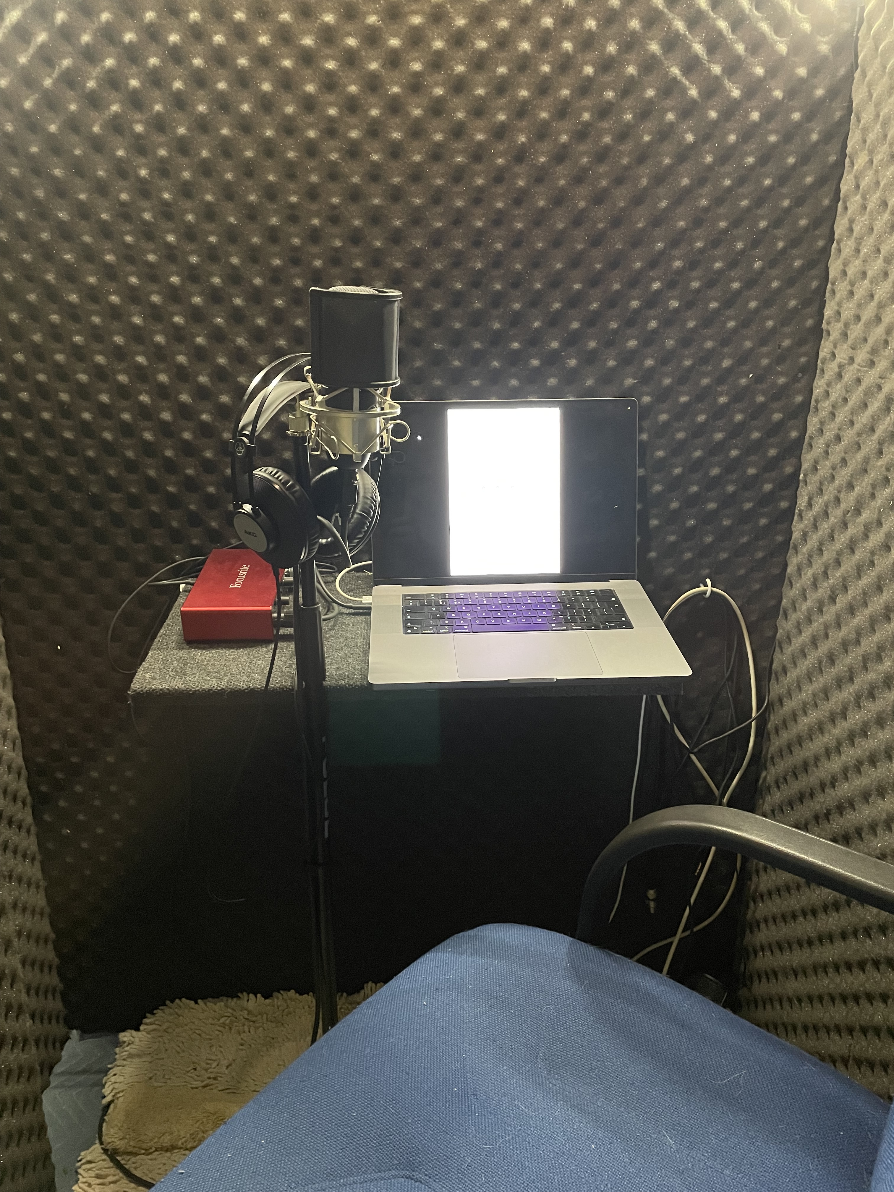 I have also built a professional studio at home and can work remotely. Here are a couple of pictures of the setup, and below, you’ll find a test read in the space.